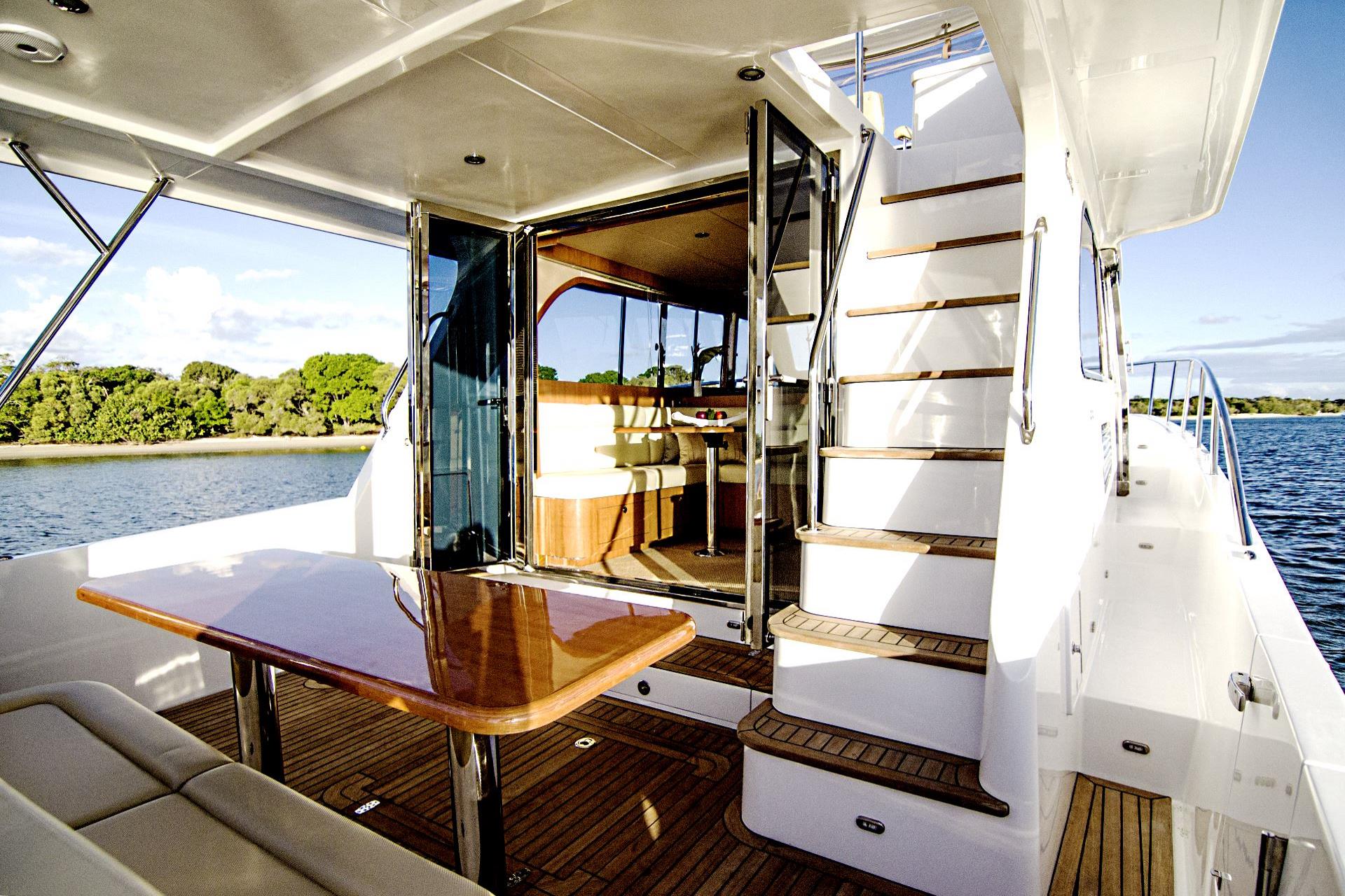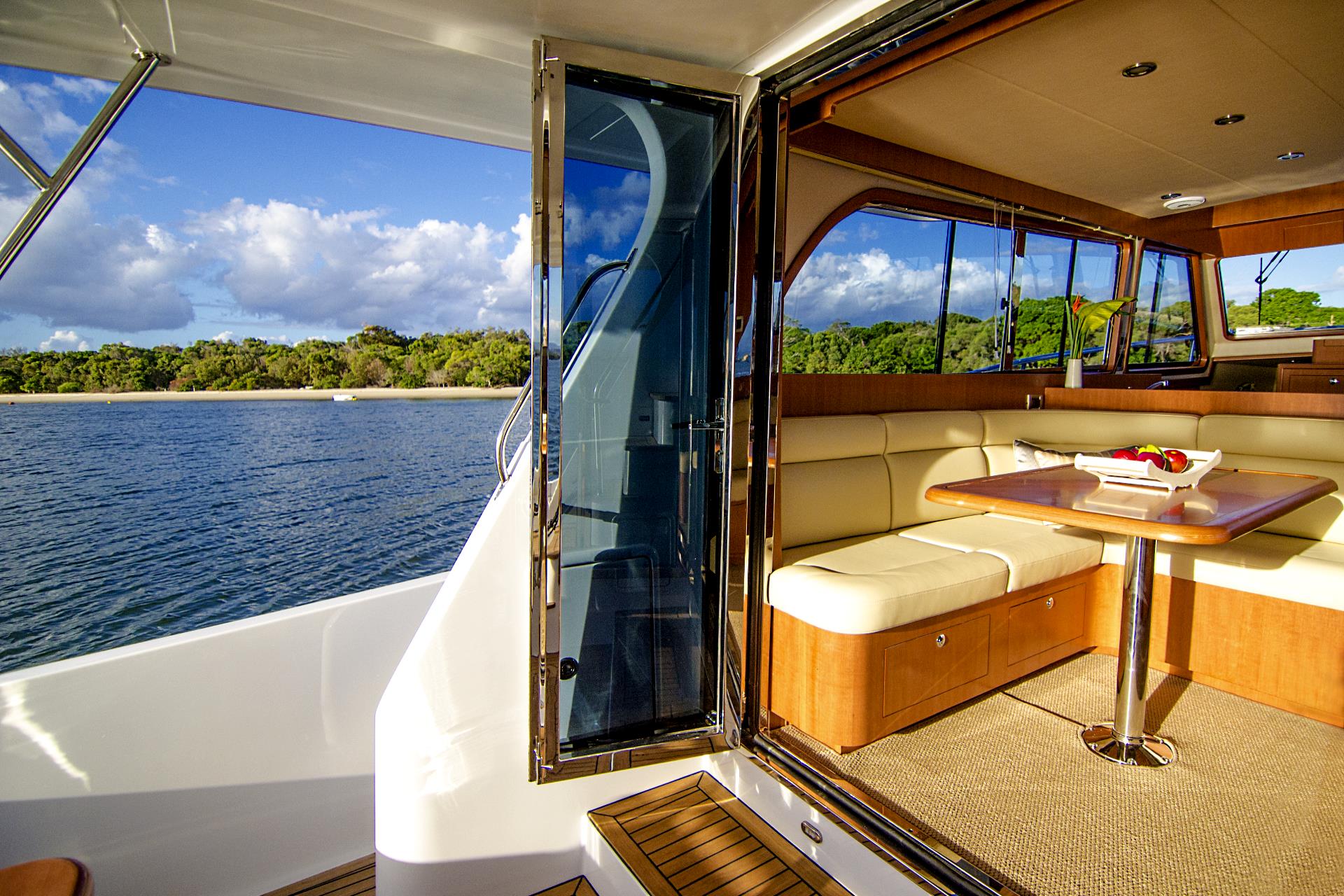 Introducing the New Fairway 37 Flybridge. All New Model now with Walk-around Side Decks and luxurious internal fit out. This all new model Fairway 37 Flybridge features twin bridge helm seats with a “ L” shaped lounge aft. The full length Flybridge hardtop over the cockpit allows you plenty of spa